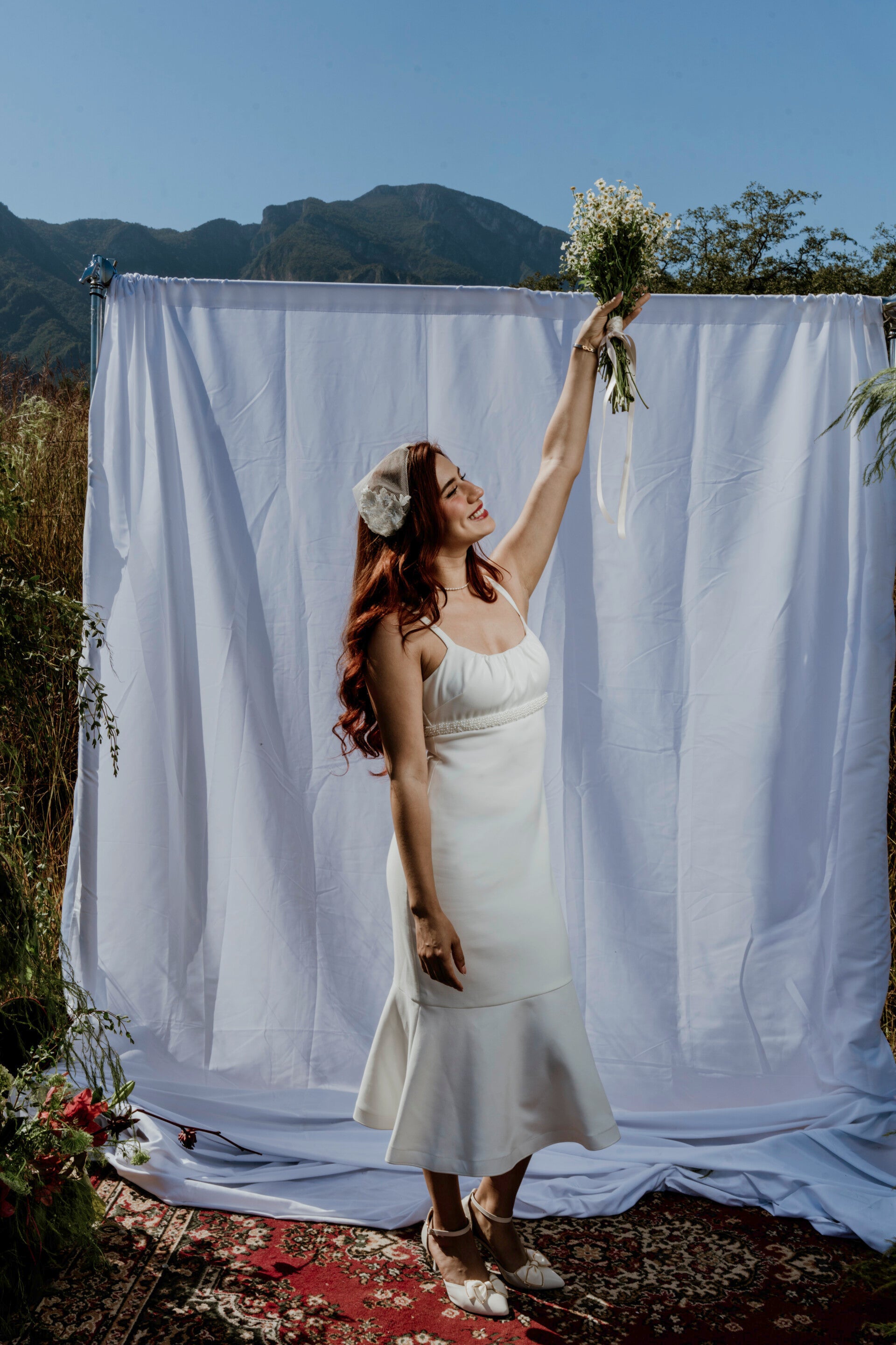 Elegante vestido midi en color blanco con escote suave drapeado y tiantes finos. Incluye una banda decorativa bajo el busto con delicado bordado de perlas que define la silueta y agrega un toque sofisticado.La falda con volante ofrece movimiento y un estilo moderno y femenino. Perfecto para bodas civiles, eventos íntimos o looks especiales.